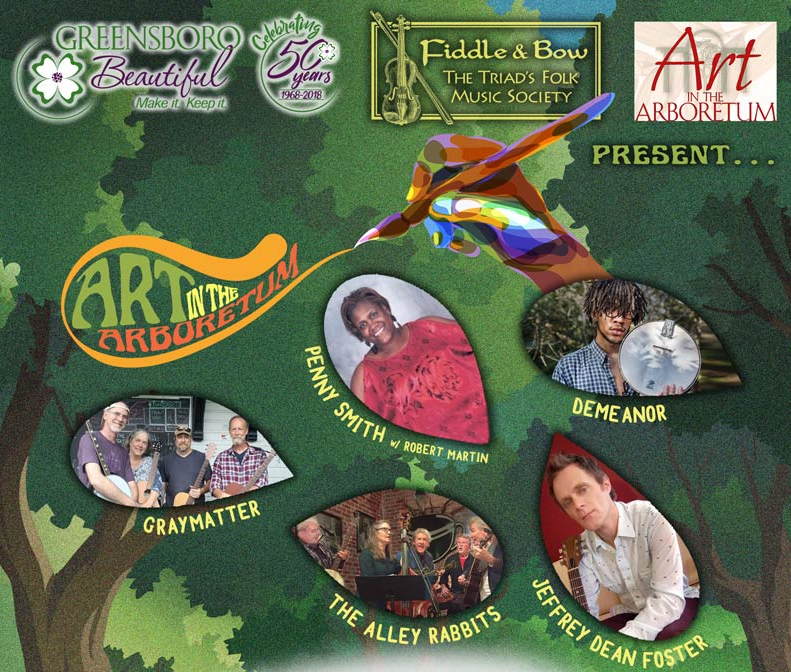 - Gospel singer with keyboardist. Penny Smith has a fabulous, powerful voice. She is increasing her performances at public events, having mostly sung at her church at age 5, school choirs, and glee clubs. She has performed with Gospel New Birth, Classic Funk Orchestra (R&B Funk Band Greensboro), Knights of Soul (Greensboro), House of Dues, and The Mighty Fairlanes. She sings on one of Medicine Men's albums. At Art in the Arboretum she will provide a gospel/folk performance. In May 2021 Penny was awarded by Mayor Nancy Vaughan the Piedmont Blues Preservation Society’s 2021 “Keeping the Blues Alive” Award at the Carolina Blues Festival.